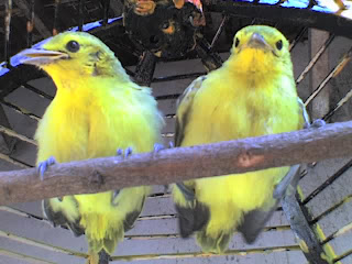 cara memilih burung sipon atau burung sirpu jantan anakan, menurut saya yang membedakan antara burung sipon jantan dan burung sipon betina adalah warna bagian bawah paruhnya yang berwarna hitam / lebih gelap daripada warna paruh bagian bawah betina yang cenderung lebih terang. bentuk kepala jantan kelihatan lebih bulat dan betina kelihatan lebi gepeng / ceper, warna bulu yang burung sipon jantan lebih gelap dibandingkan dengan yang cewek lebih cerah,tapi ada juga yang saya jumpai dipasar burung yang jantan warna bulunya agak kelabu dan paruhnya hitam, berikut ini merupakan gambar burung sipon jantan dan betina anakan.gambar (1) burung sipon di atas yang jantan sebelah kanan (betina dan jantan)
